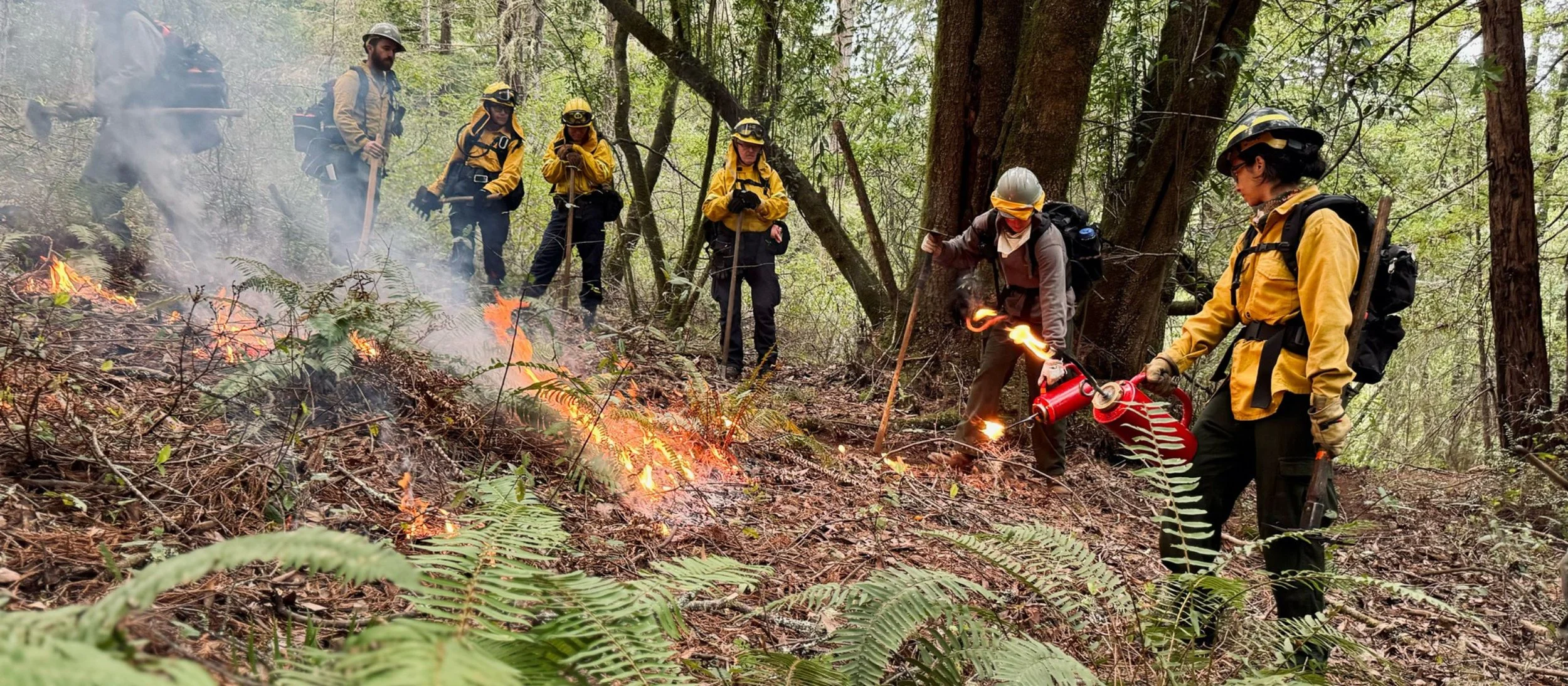 A low flame creeps across a shallow blanket of redwood duff, swallowing sword ferns in a brief crackle of light. A few inches below ground, their rhizomes prepare to resprout after a top singe and long winter soak. For a few hours, the forest in Coastal Marin is bathed in the apricot glow of a prescribed burn. Fresh char rings the base of coast redwoods, a species dating back to the Paleocene Epoch.
